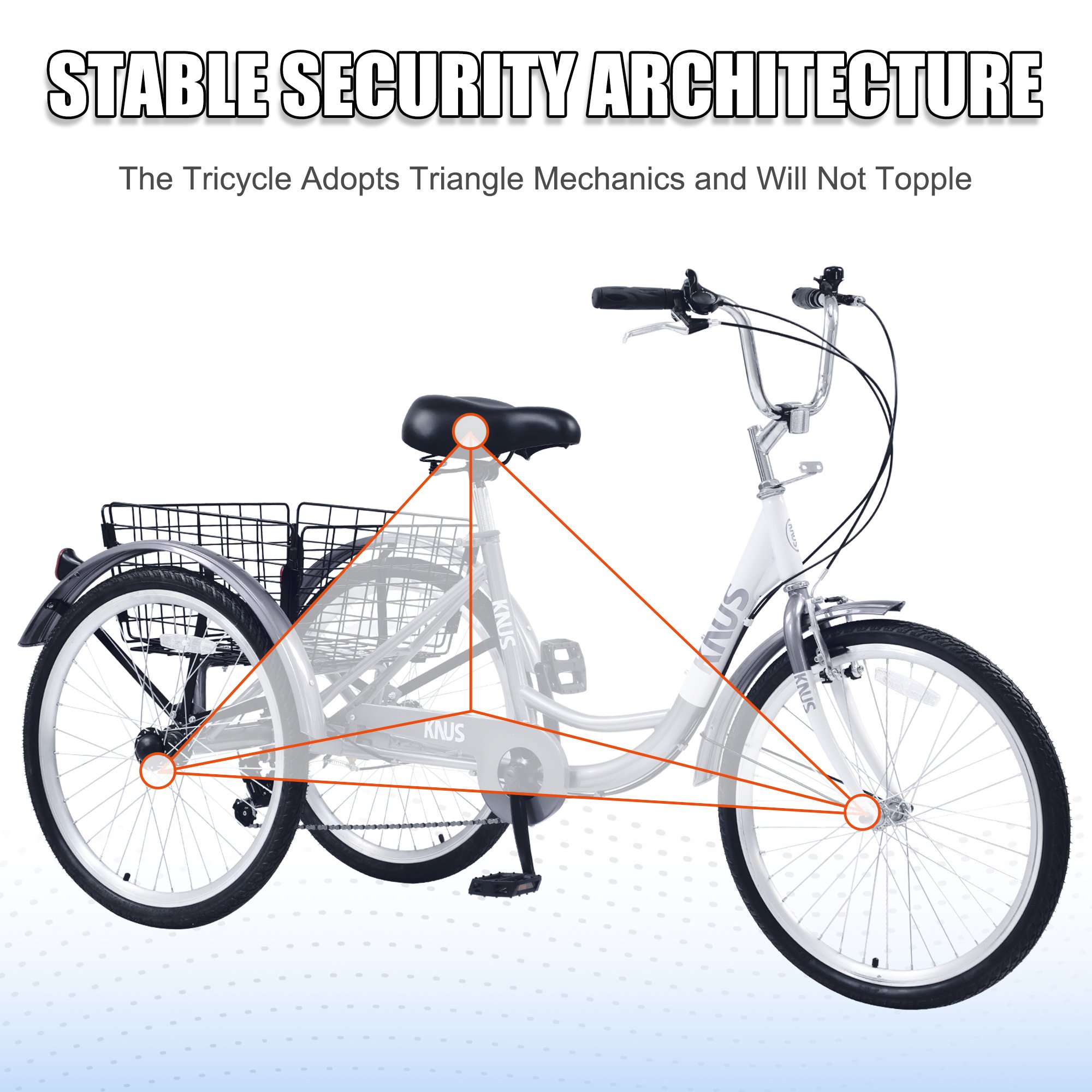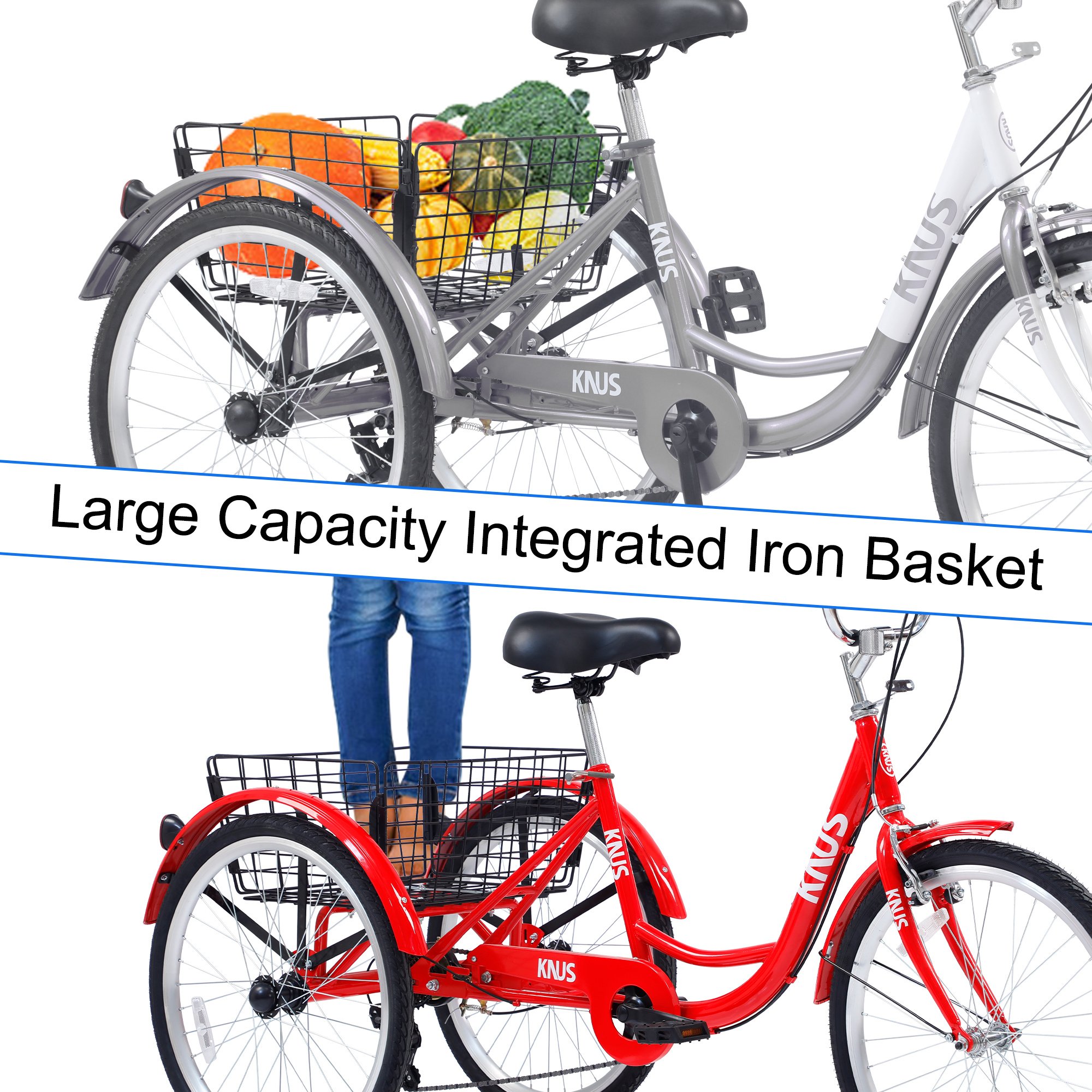 [Three-Wheeled Bike with 3 Sizes ]20" wheel suitable for rider height: 4'8" - 5'5", 24" wheel suitable for rider height: 4'11" - 5'9", 26" wheel suitable for rider height: 5'3" - 6'2". Please make sure the size is suitable before purchasing.