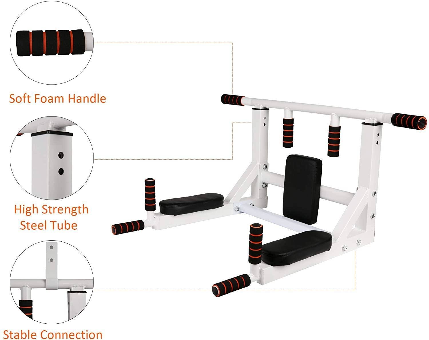 2 in 1 Multifunctional Wall Mounted Pull Up Bar-Ideal for Fitness Enthusiast:Allow for a variety of angles to workouts. Perfect for exercising your backs; shoulder; chest; arms; triceps; biceps; lats; and the front of your abs.Offer countless possibilities for your exercises. Can be used with punch bags power ropes or yoga straps resistance bands; yoga ropes(not included). 2 in 1 Multifunctional Wall Mounted Pull Up Bar. You can install this mounted pull up bar in the room; home or commercial gym. The equipment can be removed when not in use.Scientific Wide distance (27/17 inches). Avoid rubbing against walls ; enjoy your exercise time.