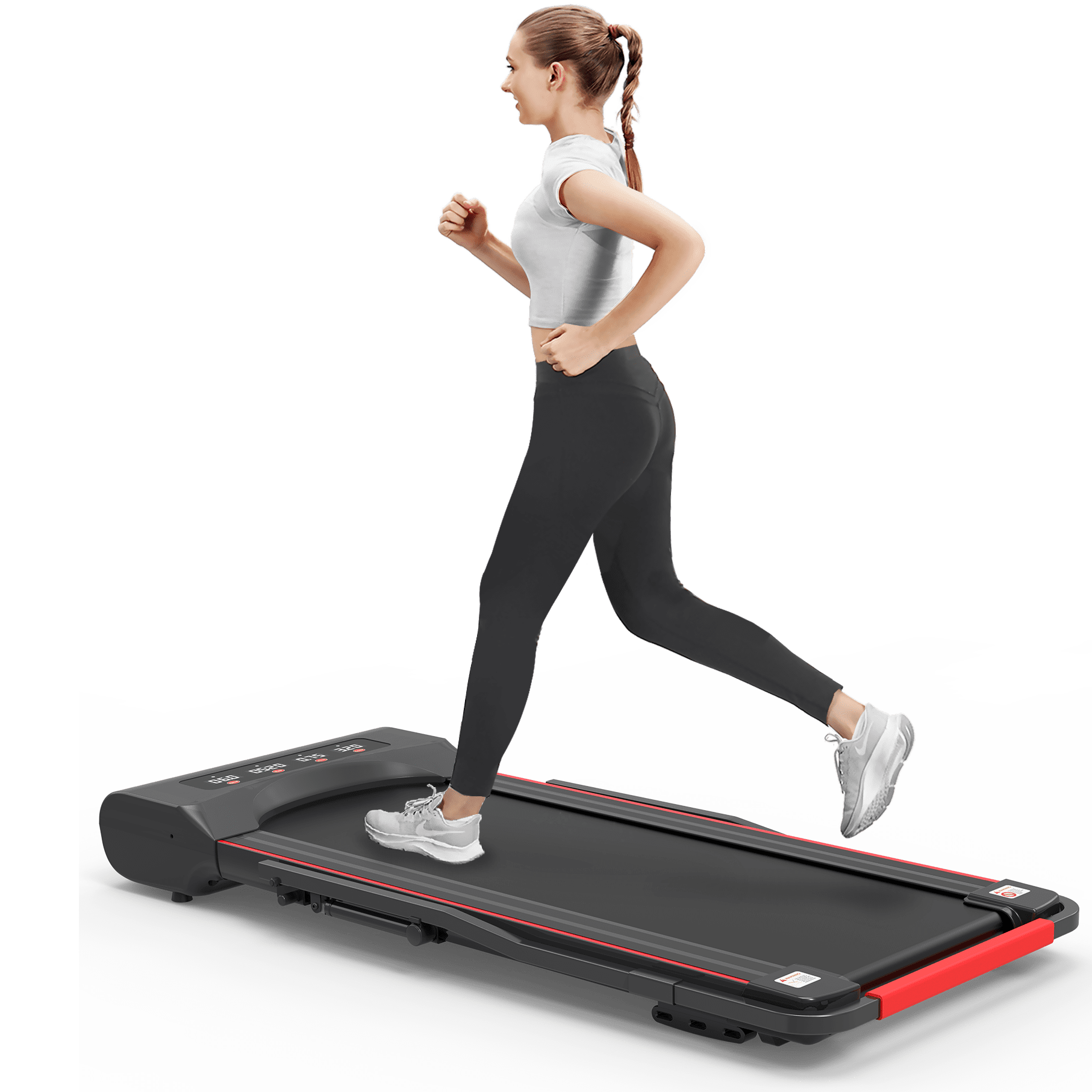 1. Smart LCD Display - 4 x 0.8" LCD displays keeps tracking Speed, Time, Distance, Calories, from the treadmill unit.2. Powerful Motor - 2.5 HP peak power of mini treadmill works smoothly for both walking and running workouts.3. Sturdy Frame - The thickend structure can afford max user weight 265 lbs, without much noise disturbing the families.4. Safe Workouts - The Running deck width of 21.7" offers a wide and safe area for home/ office exercise. 5. Easy Storage - Walking pad is slim as 5.9" mininum, portable and easy to be stored in office & apartment.